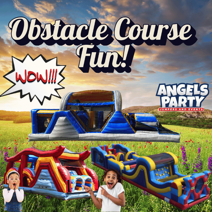 Prepare for a high-energy event with inflatable obstacle course rentals serving Yuba City, Marysville, Plumas Lake, and Olivehurst, provided by Angels Party Jumpers.